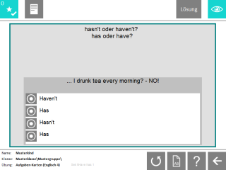 Nächste Übung wählen. Sterne-Anzahl festlegen. Übung löschen? Oder Lernplan erzeugen.